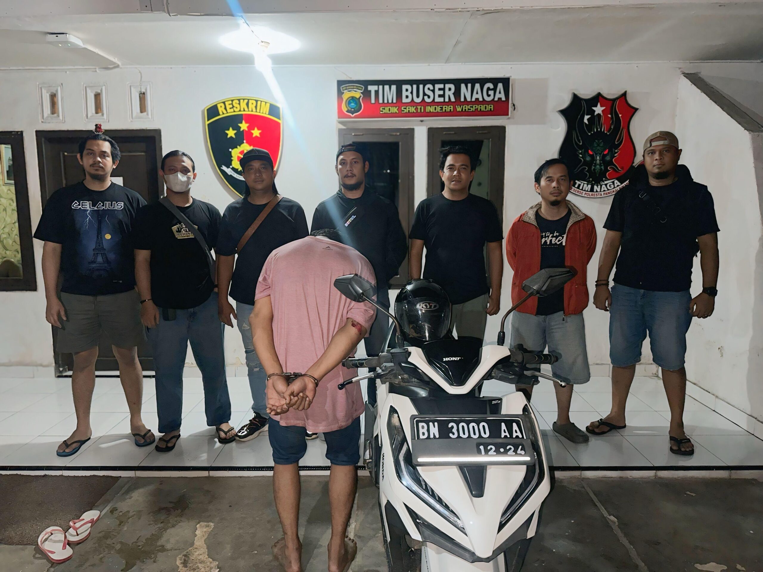Berdasarkan hasil penyelidikan, Tim Buser Naga memperoleh informasi keberadaan pelaku di daerah Semabung. Sekitar pukul 13.00 WIB, petugas berhasil mengamankan seorang pria yang mengaku bernama Fikar dan mengakui perbuatannya.