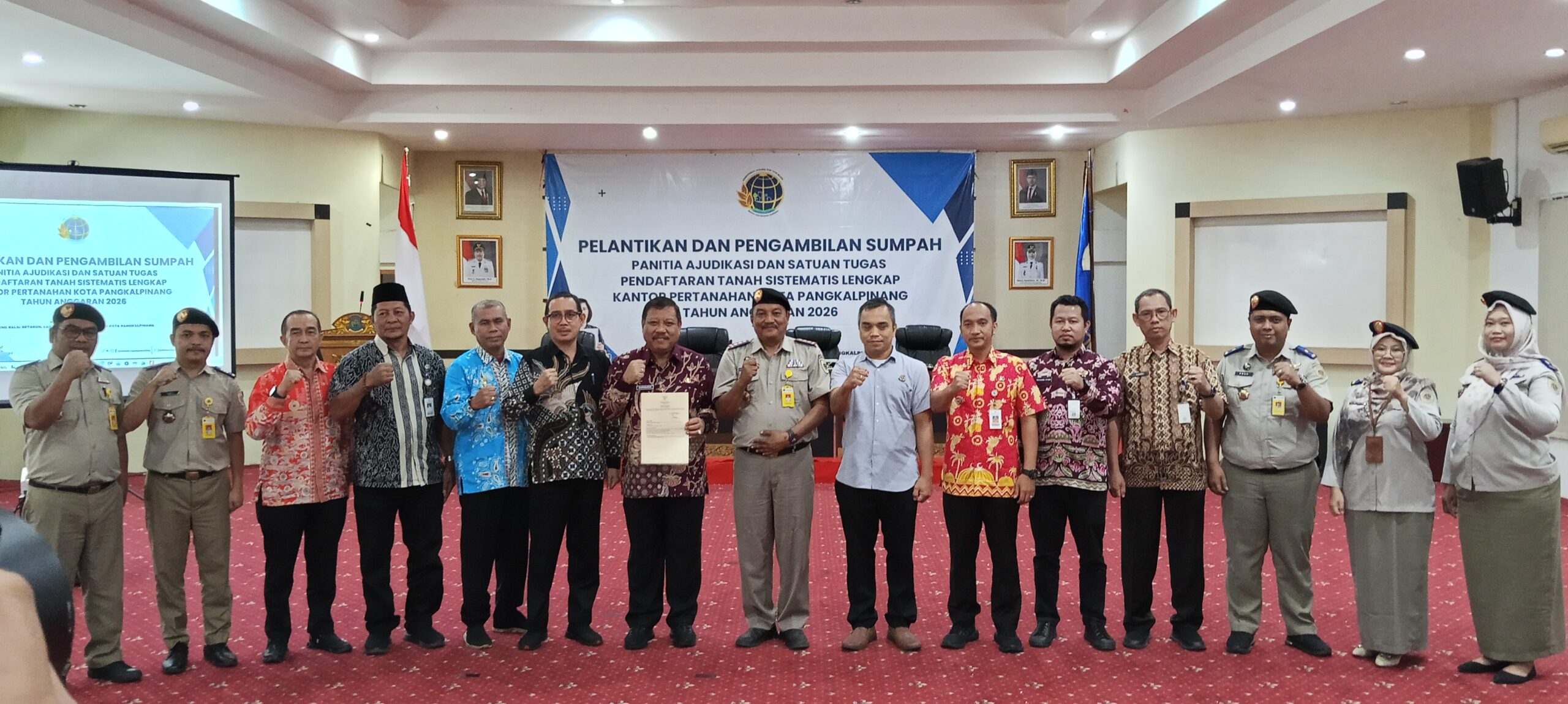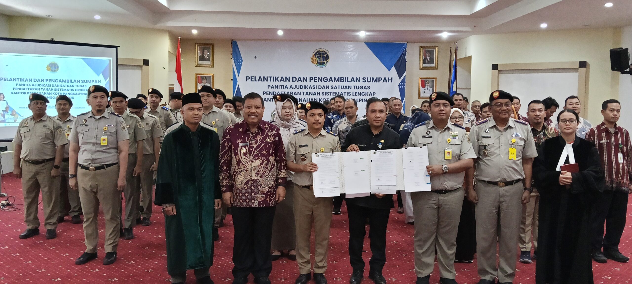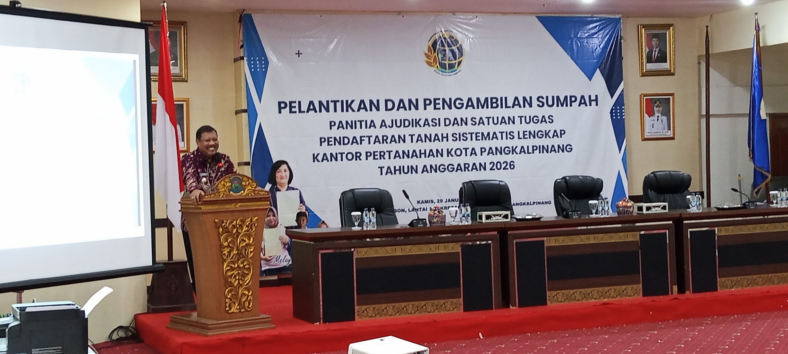 Komitmen tersebut disampaikan langsung Wali Kota Pangkalpinang, Prof. Saparudin, saat menghadiri pelantikan dan pengambilan sumpah Panitia Ajudikasi serta Satuan Tugas PTSL di lingkungan Kantor Pertanahan Kota Pangkalpinang, yang digelar di Balai Besar Betason Kantor Wali Kota Pangkalpinang, Kamis (29/1/2026).