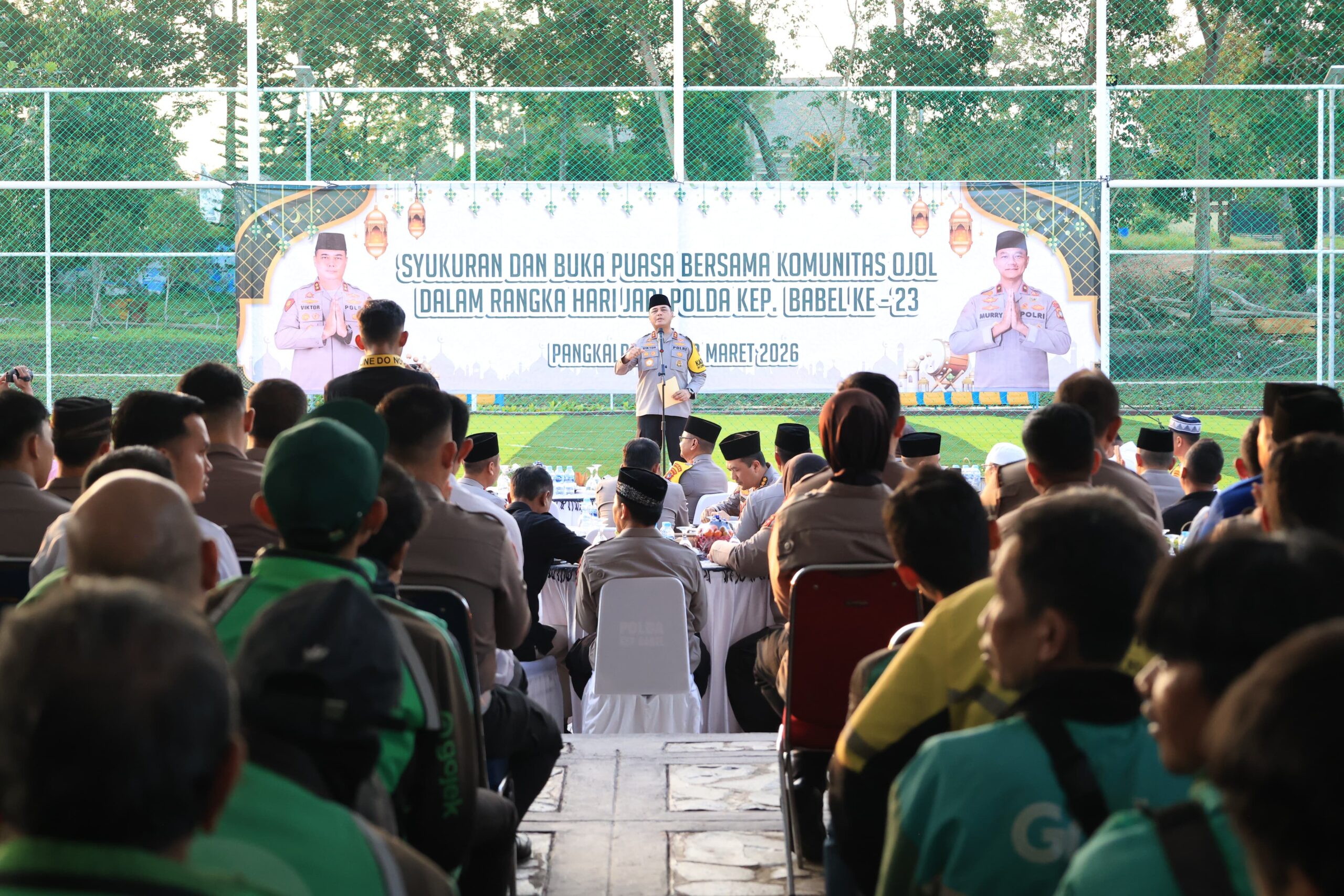 Babel,LibangNews.Com- Dalam rangka memperingati Hari Ulang Tahun (HUT) ke-23 Polda Kepulauan Bangka Belitung, jajaran Polda Babel menggelar kegiatan buka puasa bersama dengan komunitas pengemudi ojek online (ojol) di Pangkalpinang, Jumat (13/3/2026).