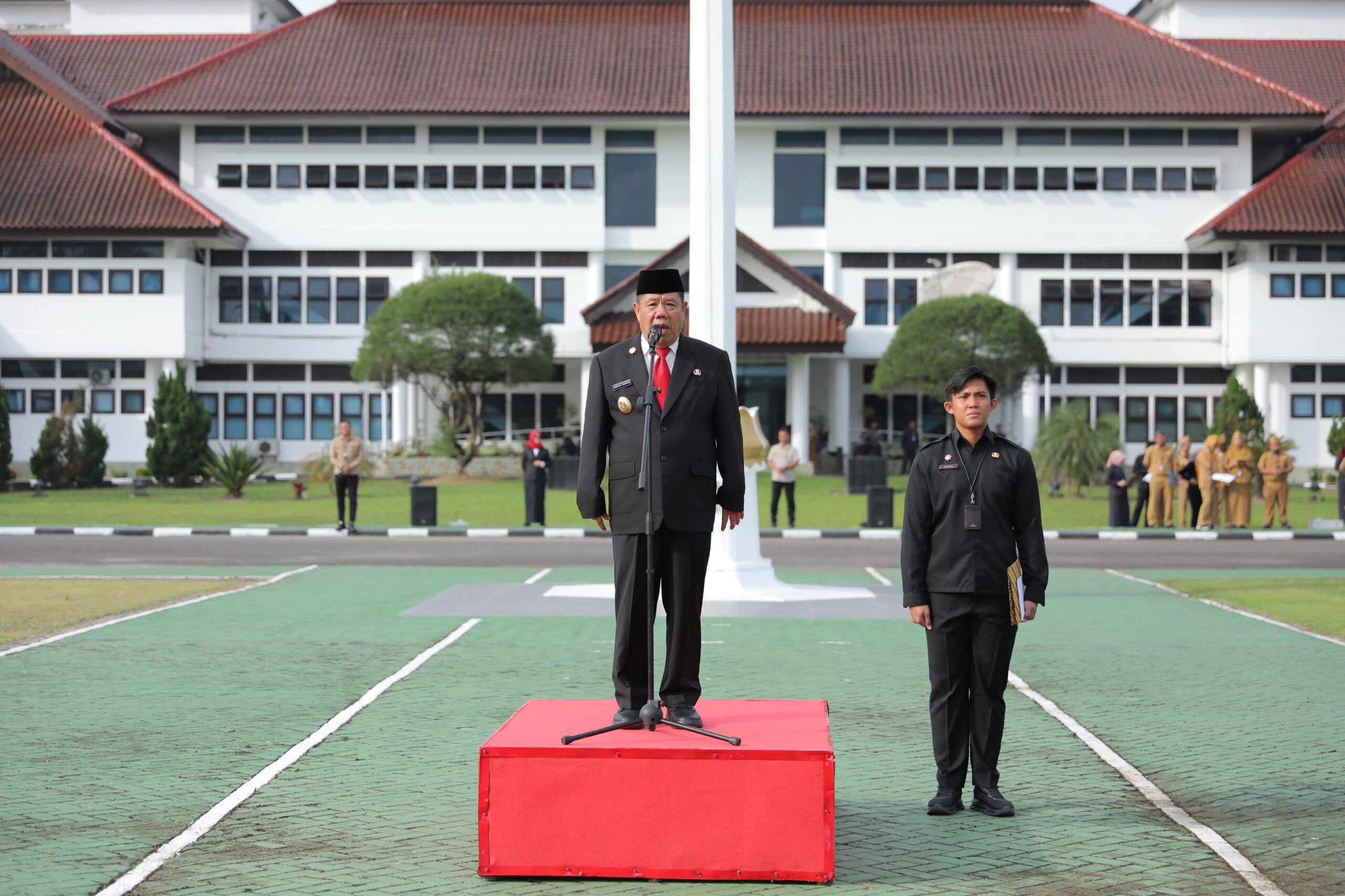 Babel,LibangNews.Com- Gubernur Kepulauan Bangka Belitung (Babel) Hidayat Arsani memimpin upacara bulanan di lingkungan Pemerintah Provinsi Babel Tahun 2026, yang digelar di Halaman Kantor Gubernur Babel, Senin (19/1/2026). Upacara ini menjadi momentum penguatan komitmen aparatur sipil negara (ASN) dalam membangun birokrasi yang disiplin, berintegritas, profesional, dan berorientasi pada pelayanan masyarakat.
