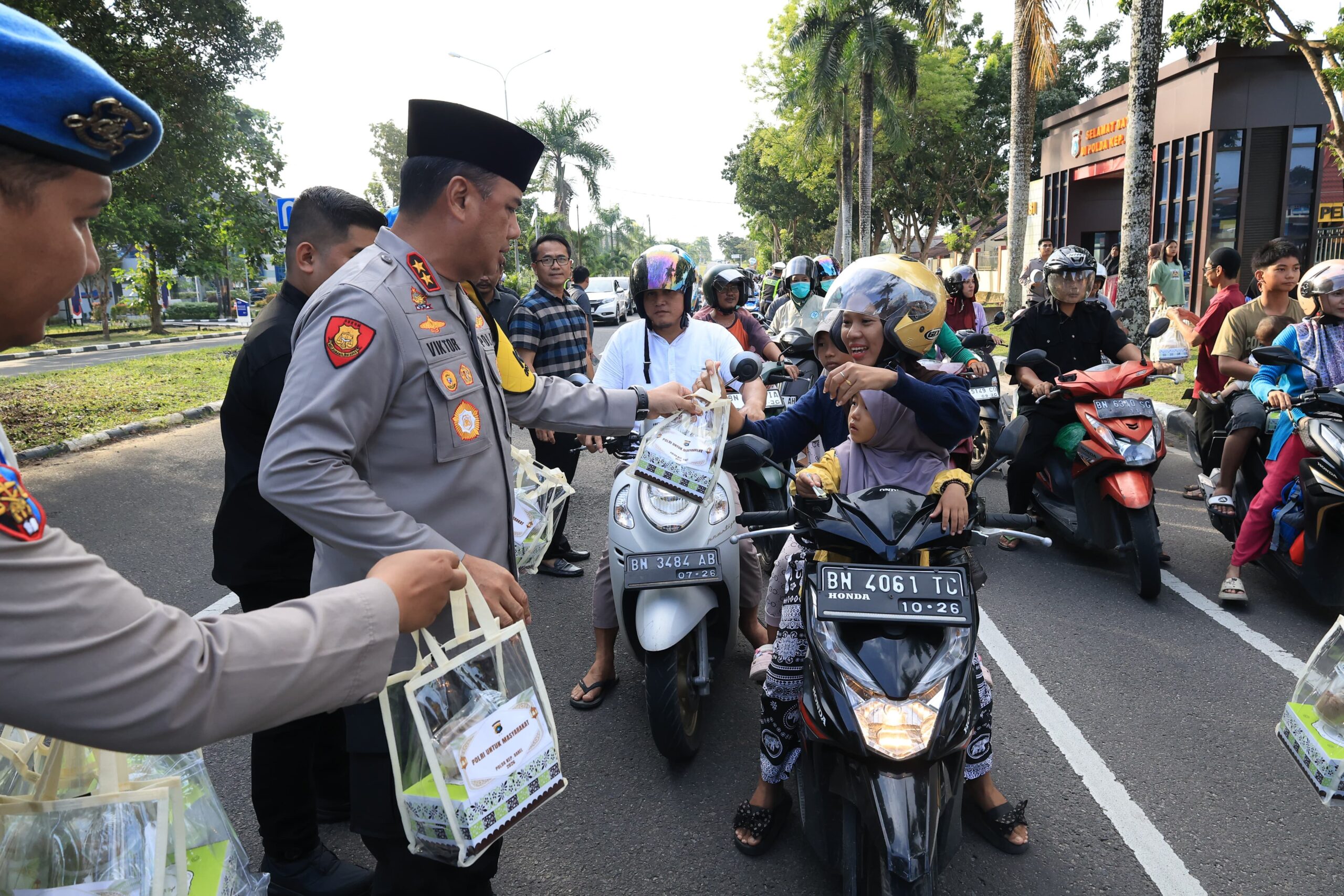 Babel,LibangNews.Com- Memperingati Hari Ulang Tahun (HUT) ke-23, Polda Kepulauan Bangka Belitung memilih merayakannya dengan berbagi kepada masyarakat. Sebanyak 1.300 paket takjil dibagikan kepada warga yang melintas di depan Mapolda Babel, Jumat (13/3/2026) sore.
