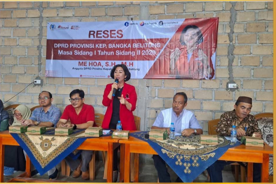 Babel,LibangNews.Com- Anggota DPRD Provinsi Kepulauan Bangka Belitung (Babel), Me Hoa, memanfaatkan masa reses Masa Sidang I Tahun Sidang II 2026 untuk menyerap aspirasi sekaligus menyosialisasikan berbagai program Pemerintah Provinsi Babel kepada masyarakat. Kegiatan tersebut digelar di Ruang Pertemuan Kantor Desa Kampung Jeruk, Kecamatan Pangkalan Baru, Kabupaten Bangka Tengah, Jumat (16/1/2026).