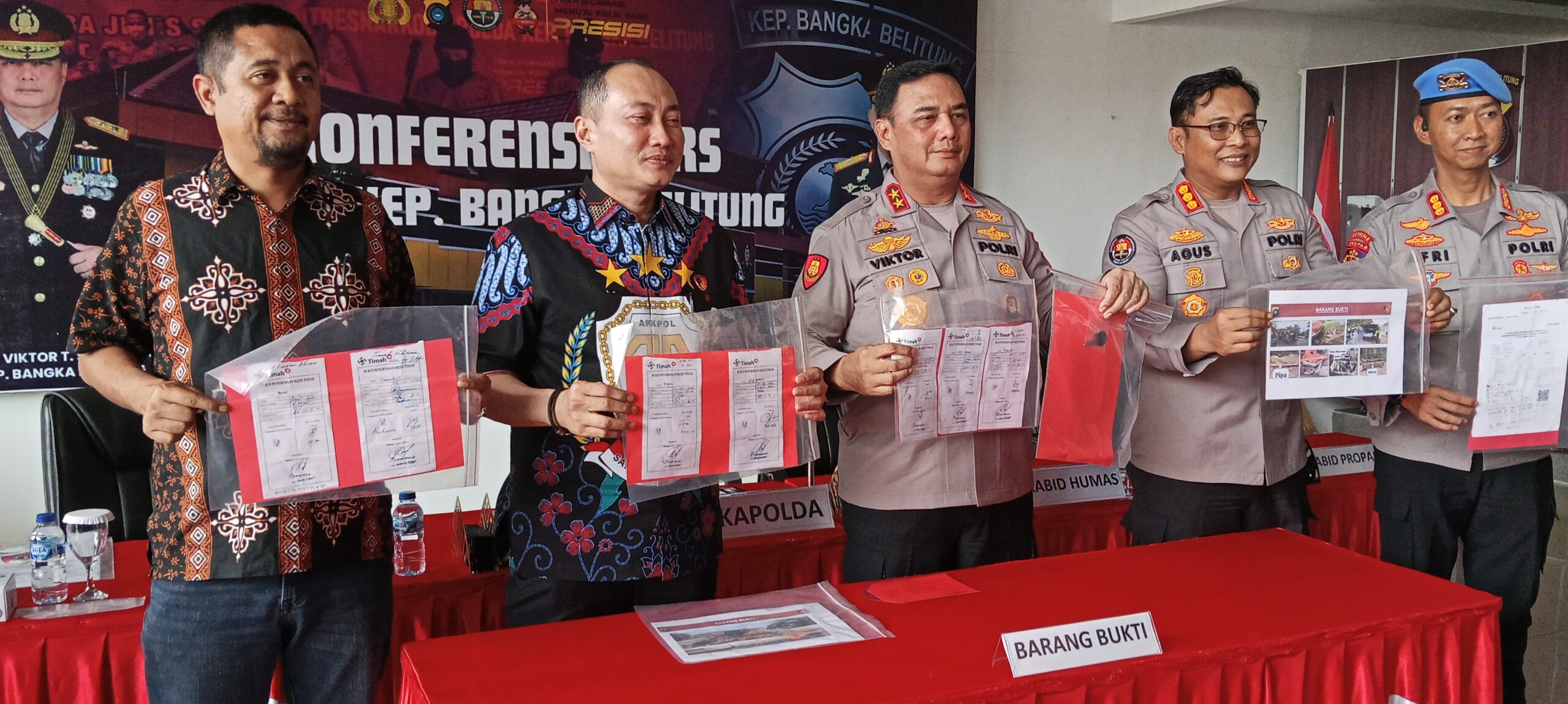 Tak hanya alat berat, penyidik juga menyita peralatan tambang, dokumen pengiriman hasil tambang, serta sekitar 275 kilogram timah basah yang diduga berasal dari aktivitas ilegal di lokasi kejadian.