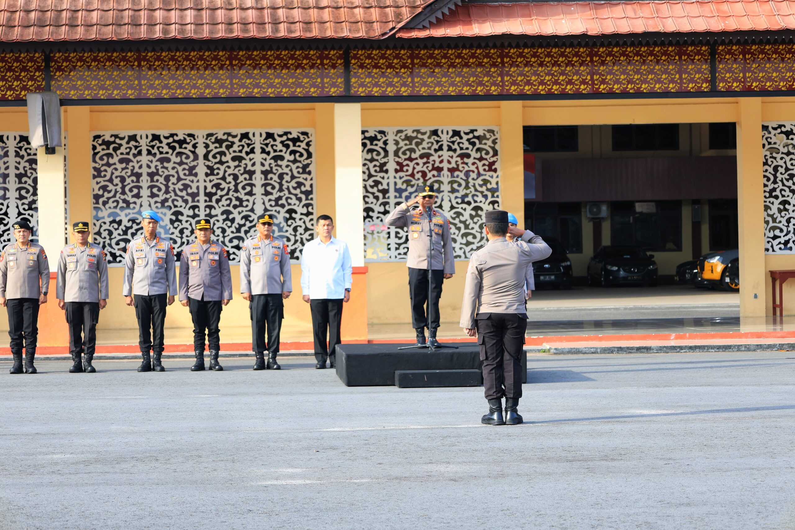 “Apel gabungan tetap kita laksanakan setiap hari. Saya akan cek langsung dan berusaha selalu hadir. Saya ingin memberi contoh, karena menegur anggota harus diawali dengan memberi teladan,” ujar Murry di hadapan peserta apel.